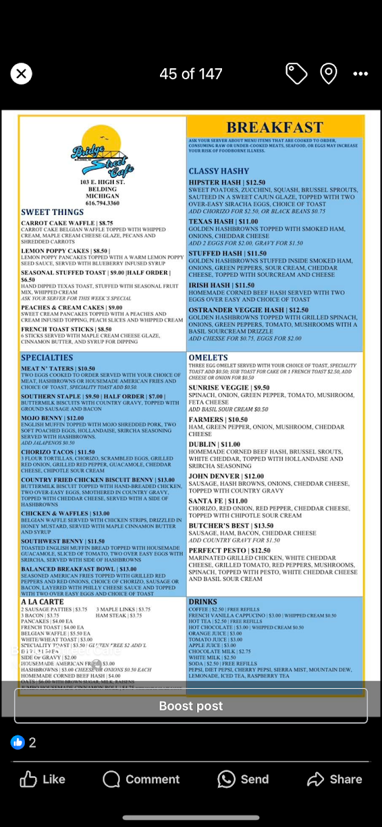 Welcome to Bridge Street Cafe, a hidden gem nestled along the banks of the river at 103 E High St, Belding, MI. Upon entering, you'll instantly feel the warm, comfortable ambiance that invites you to relax and savor every moment. The menu here is a testament to deliciousness, consistently delivering high-quality dishes that leave patrons raving about their experiences.